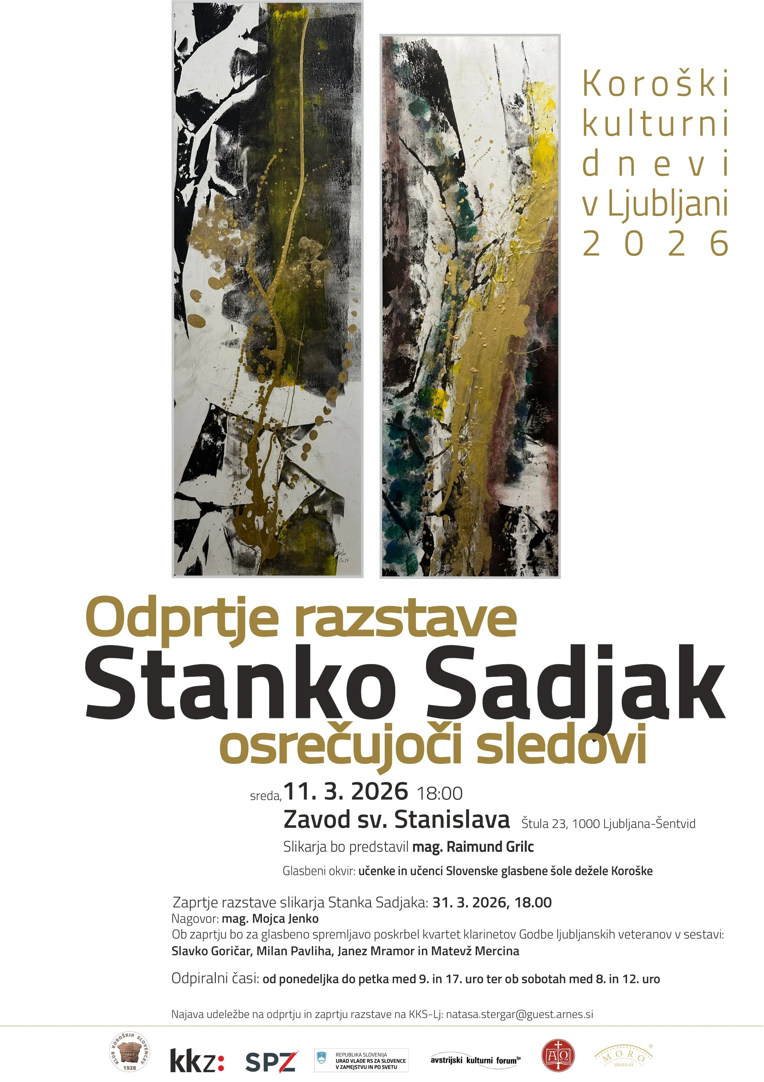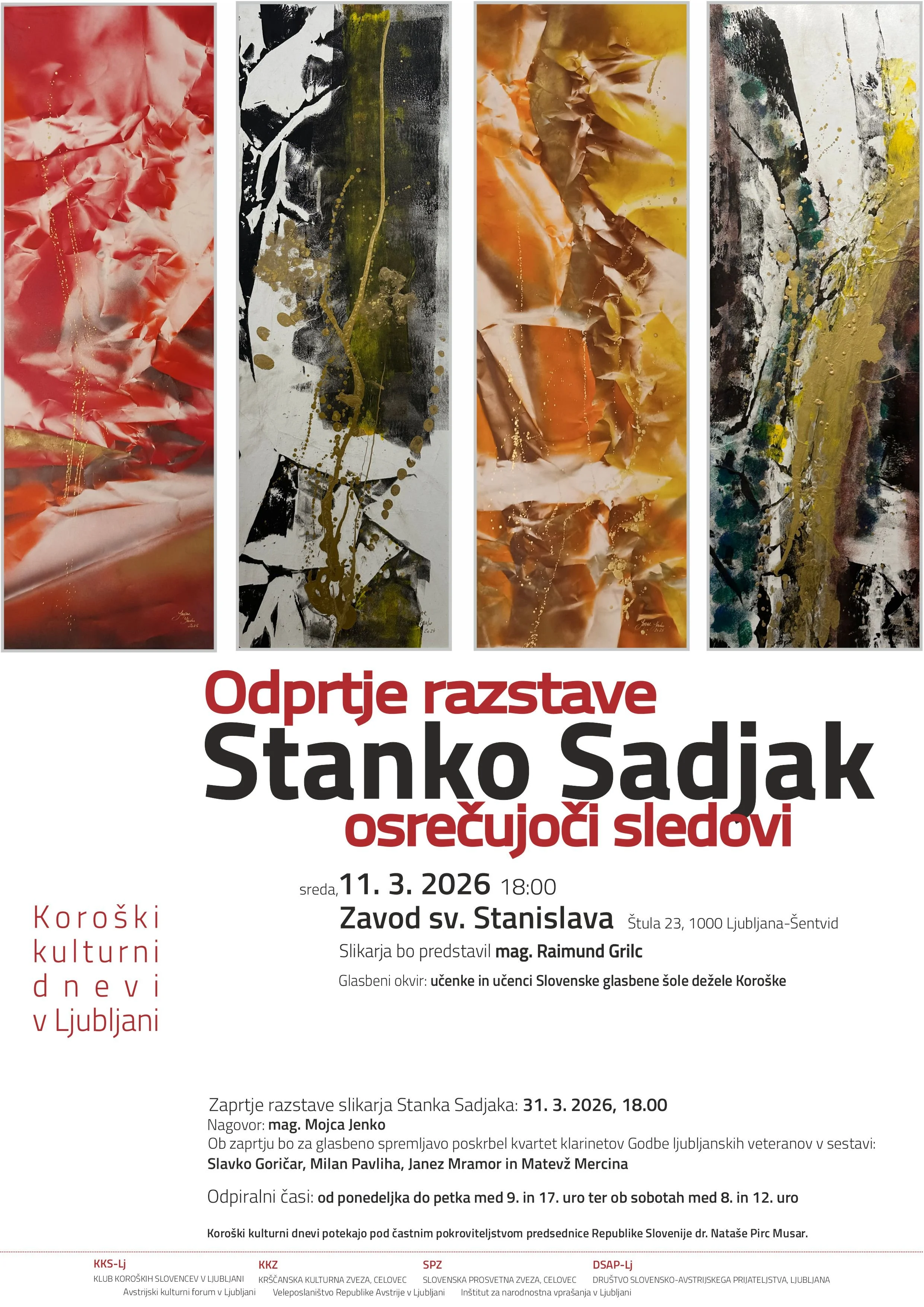 Odprtje razstave OSREČUJOČI SLEDOVI slikarja Stanka Sadjaka iz Strpne vasi pri Šmihelu pri Pliberku.